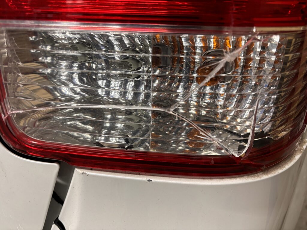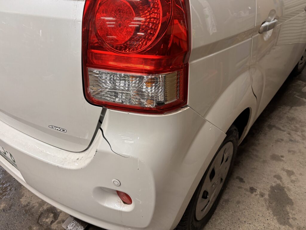 リヤバンパーとテールランプに亀裂が入っています。