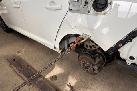 【鈑金塗装交換】札幌市中央区のお客様よりトヨタカローラの左クォータ、左リアドア修理のご依頼いただきました